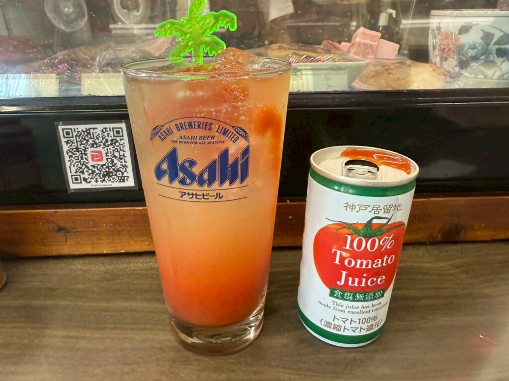 少しずつチューハイを飲みながら、トマトジュースで味変していく。赤く染まるにつれ、マドラーのヤシの木が意味を持ち始める――まさに伏線回収型チューハイ。お見事!