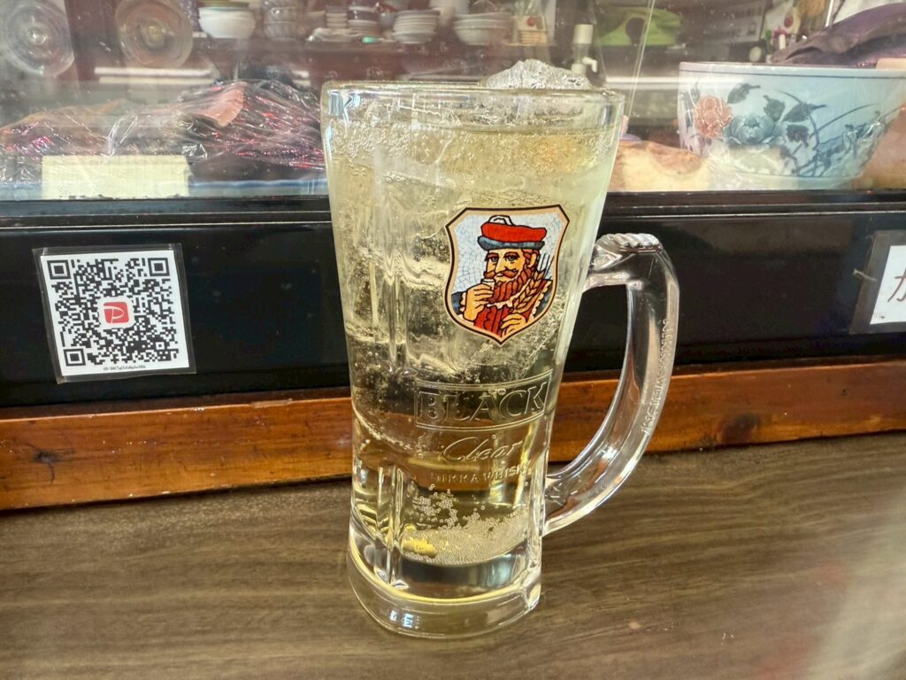 大瓶赤星600円にひかれたが、お腹いっぱいになるのを懸念して、関西といえばのハイボール。 大と小とあるが、ここも弱気に小で注文。