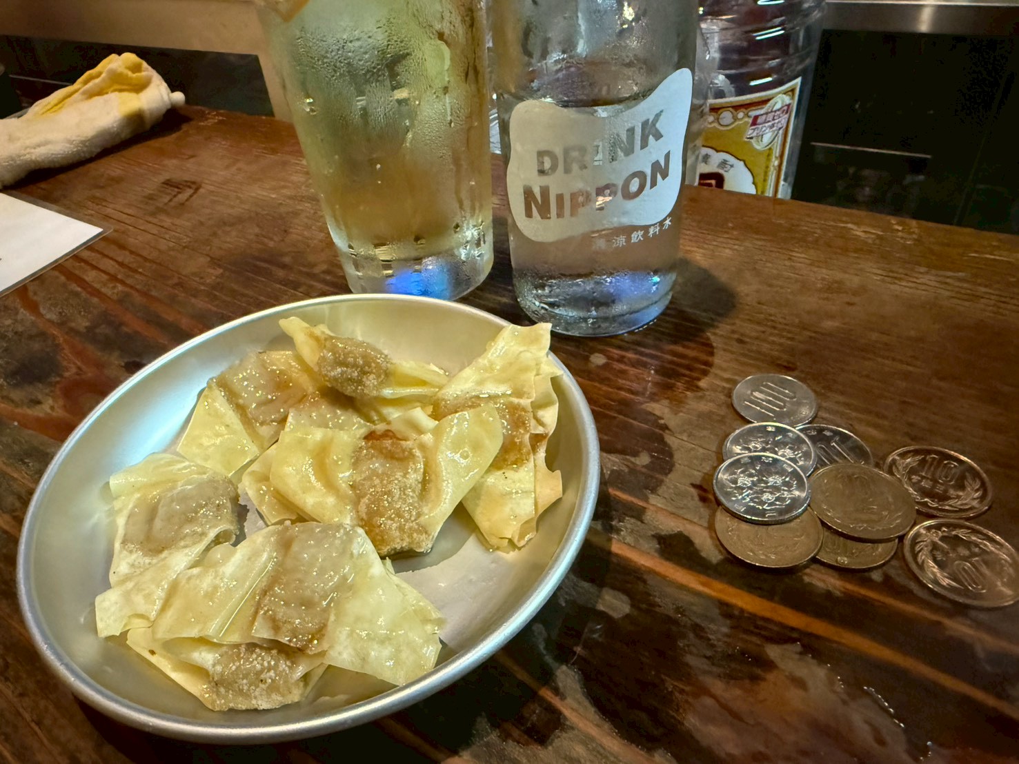 レギュラーメニューから「揚げワンタン」。こんなにたっぷり入って200円とは、なんてこったい!