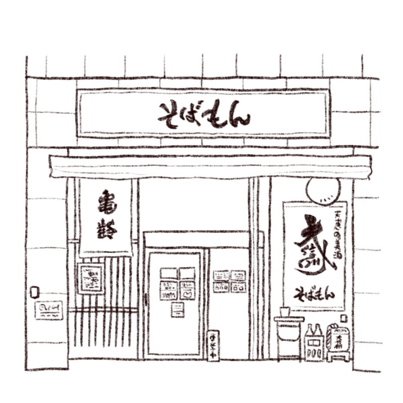 和光市駅北口に3軒だけ飲食店がある。それより奥は静かな住宅街が広がるばかり。そんな3軒の1軒がそば屋だ。入り口横に杉玉と、名酒「大信州」のロゴがプリントされた巨大な掛け布が下がっている。ここが飲める店であることがわかる。少し遅めの午後に和光市を通る機会があったので、吸い寄せられるようになかに入った。