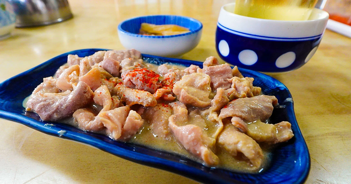 syupo 大正2年から続く甲府の100年食堂『稲荷家』朝から絶品モツ皿と湯呑みぶどう酒で乾杯JR甲府駅の南口近くにある『稲荷家』は、なんと大正2年の創業。甲府の変遷を見守り続けてきた老舗の大衆食堂です。開店は早く朝7時半から通し営業をしており、地元の人