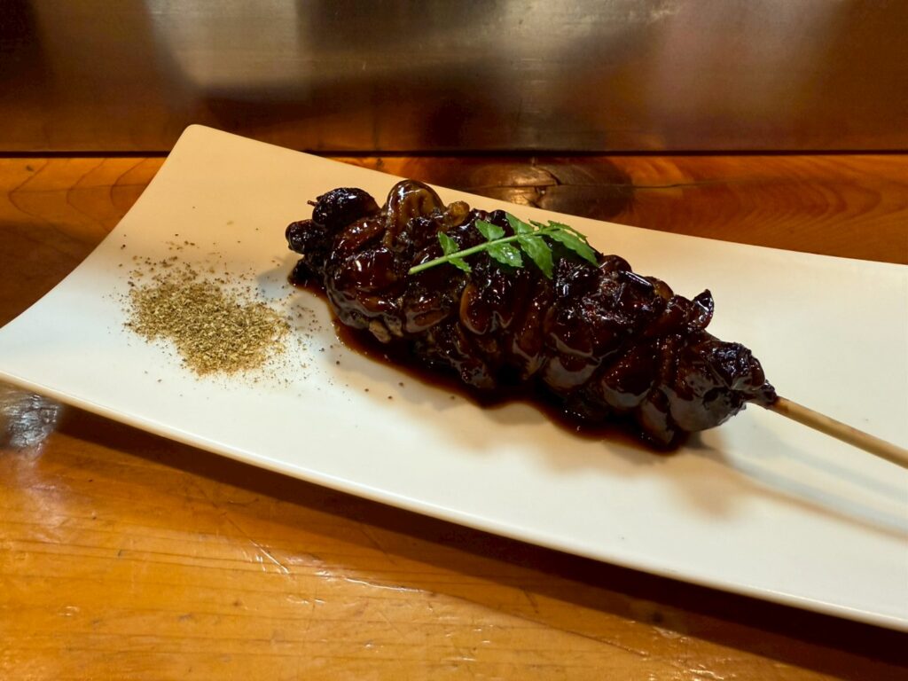 バランスよく串打ちされた重量感のあるうなぎの肝串は、パリパリ食感に甘いタレが絡み、文句なし。