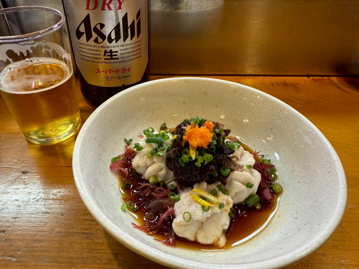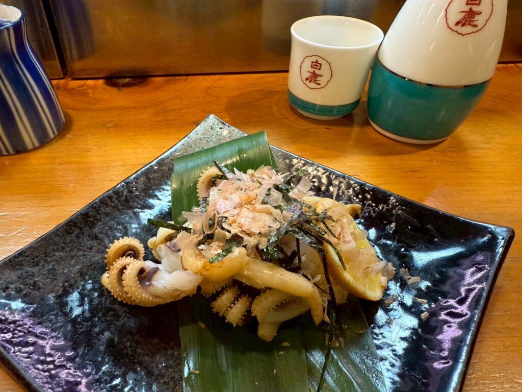 生姜と海苔の香りがたまらない、芸術品のようなスミイカゲソ。しっかり日本酒に合うように調理してくれている。