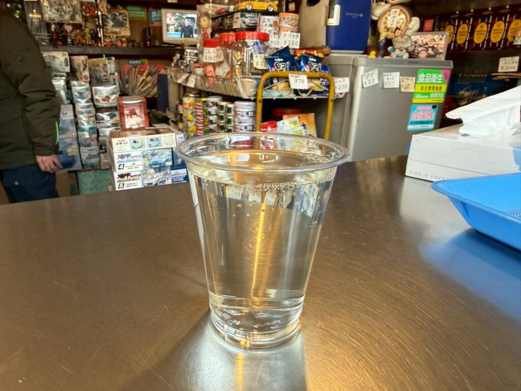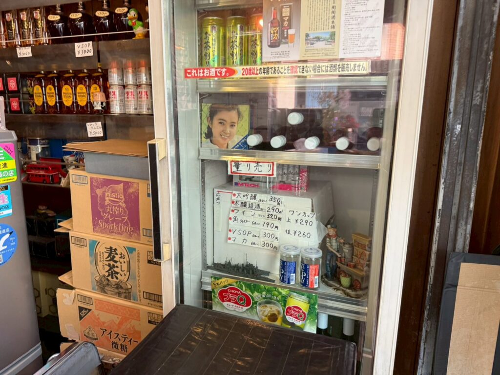 コロナ前はL字カウンターをフルに使って飲めたそうだが、今はドリンク冷蔵ケースの上で、こぢんまりと飲むことしかできないようだ。
