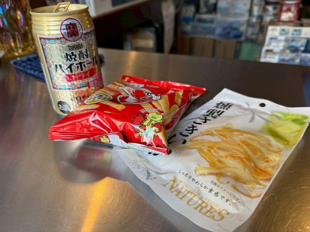 アテには、大人も子どもも大好きな、えびせんとさきいかのエビイカコンビ。