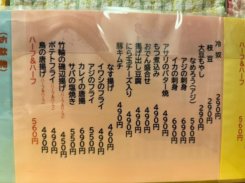 渋い暖簾をくぐると、思いのほか新しく明るめの店内。1976年(昭和51年)創業だが、3〜4年前に改装したらしい。元々は寿司屋で修行をしていた大将がひとりで切り盛りする、地元に愛される居酒屋さん。