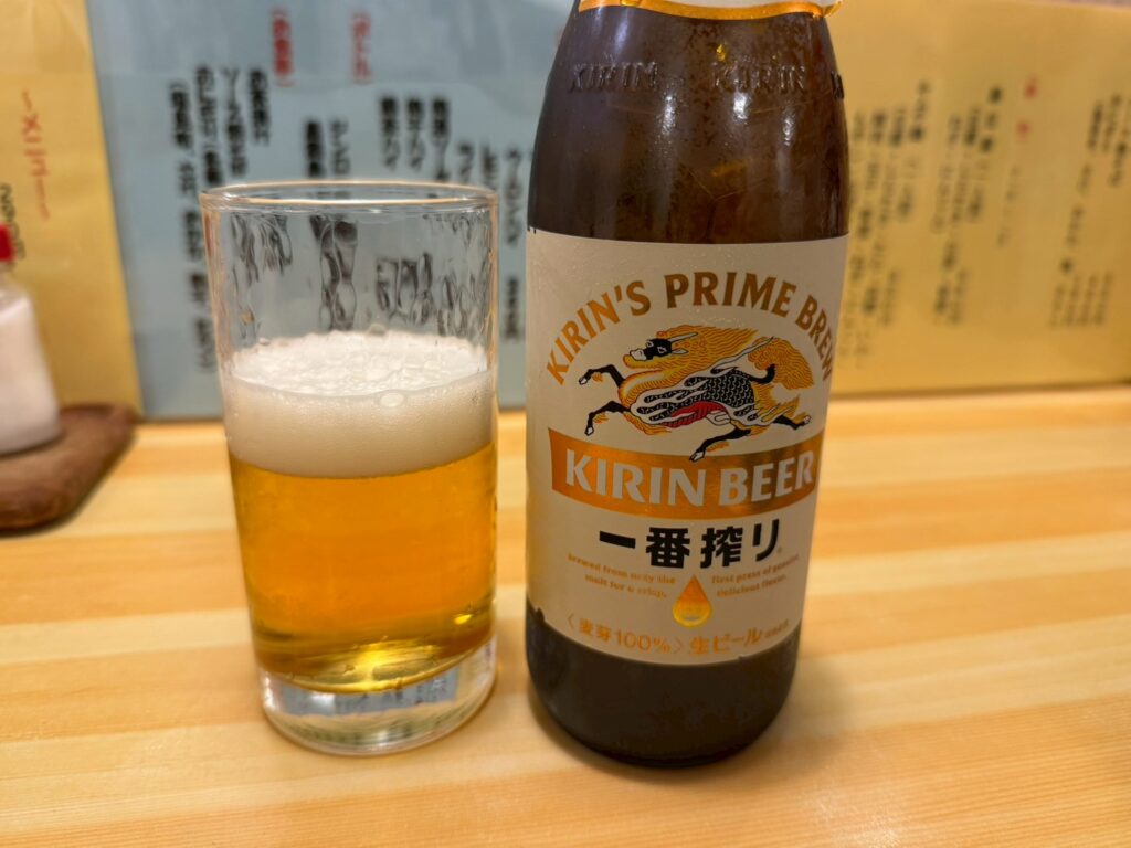 俄然興味が湧いてきたところで、中瓶の一番搾りでスタート。