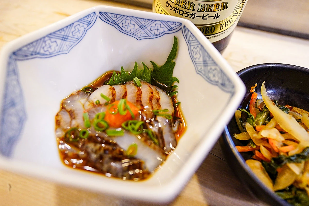 中央区馬喰町の繊維問屋街に路地に、まるで映画のセットのような王道の昭和酒場があります。1965年創業の『佐原屋』。白いリネンがかかる丸椅子に白木の一枚板カウンターが伸びる店内。150年続くサッポロラガーの瓶を傾ければ、気分は昭和映画の主人公。雰囲気だけでなく、値段は手頃で安定した美味しさです。