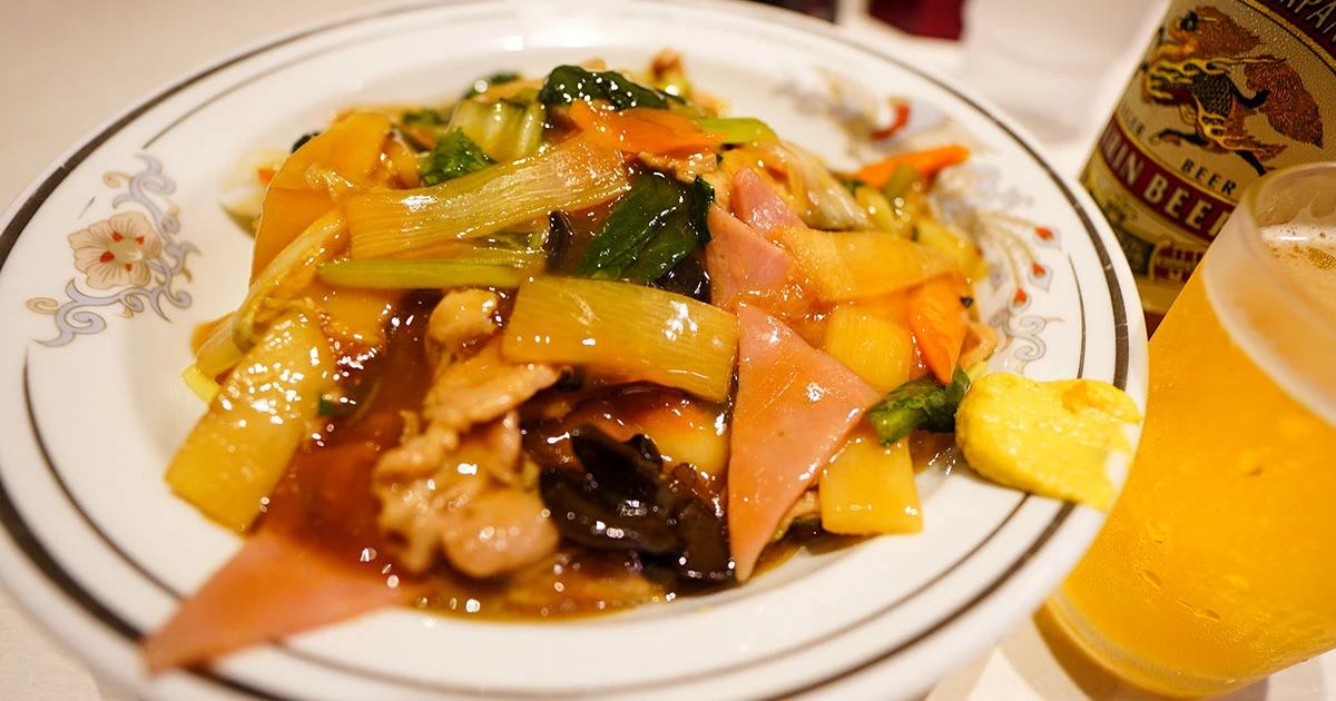 syupo 日暮里『中国料理 大三元』タワマン1階の老舗町中華。深夜の絶品五目焼そばと熱処理ラガー日暮里駅の東口。駅前の再開発で近代的な高層マンションが立ち並ぶその足元で、昭和から変わらず営業を続けている店があります。創業から半世紀以上。新しいビルの1階に入