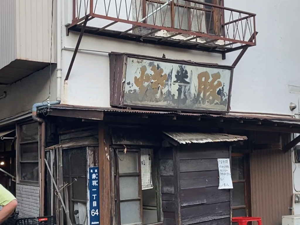 赤羽にあるやきとんの名酒場「米山」さんの看板が半分なくなっています。以前の看板と比べると「焼」と「米山」の半分がなくなったようです。