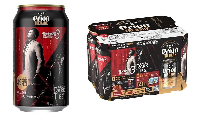 オリオンビールと『龍が如く 極3 / 龍が如く3外伝 Dark Ties』がコラボレーション!数量限定で「オリオン ザ・ダーク 『龍が如く』デザイン缶」&コラボグッズを発売~抽選でゲームソフトや「オリオン ザ・ダーク」が当たるキャンペーンも実施~ - オリオンビール
