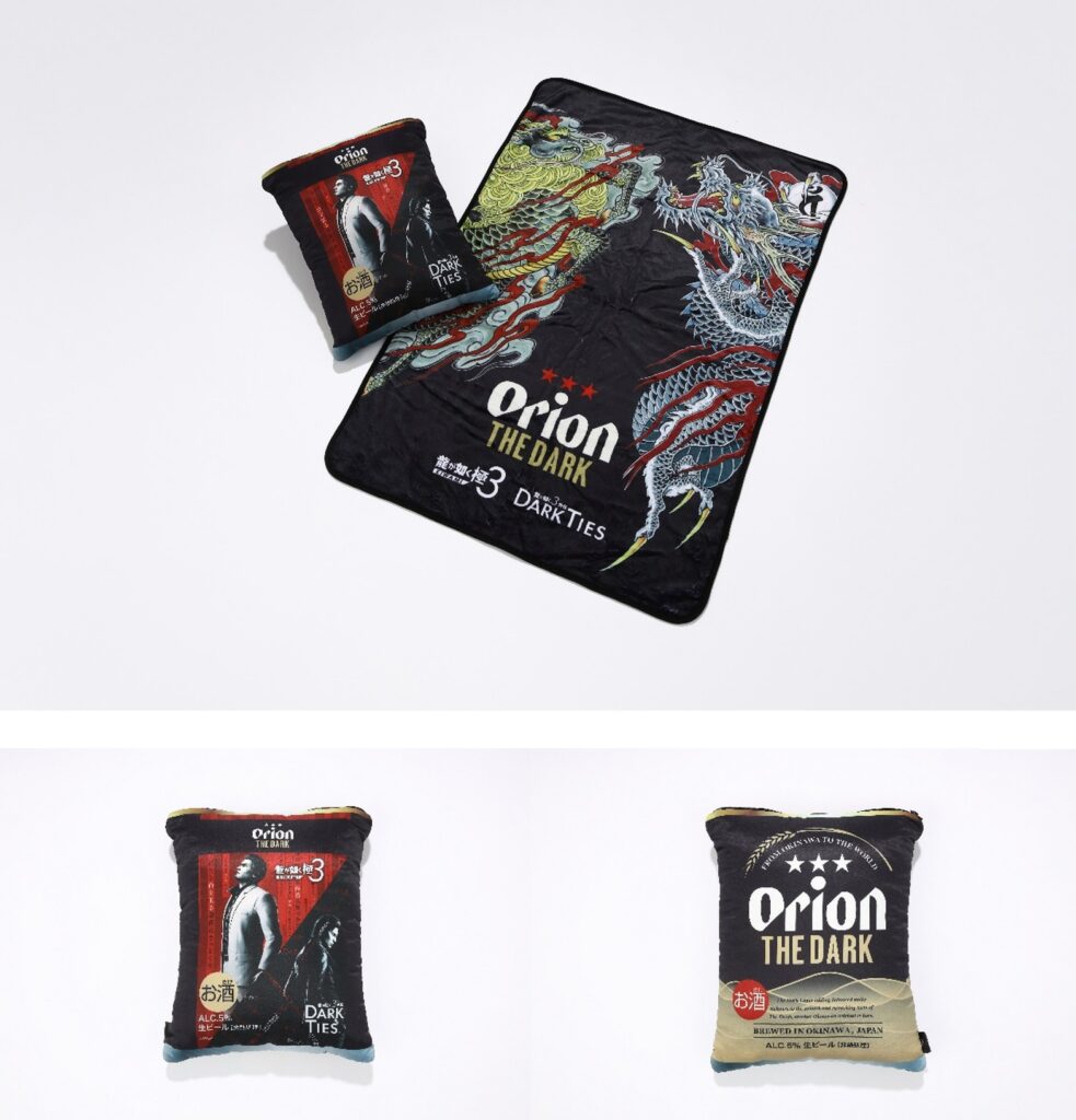 オリオンビールは人気ゲーム『龍が如く 極3/龍が如く3外伝 Dark Ties』とのコラボ企画を実施。これを記念して、「オリオン ザ・ダーク」をベースにした『龍が如く』デザイン缶を数量限定で発売し、コラボTシャツやステッカー、クッションなどのオリジナルグッズも展開します。