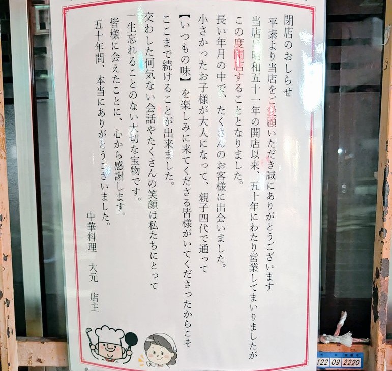 【閉店】塚本の町中華「大元」が半世紀の歴史に幕