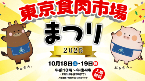 イベント【イベント情報】入場無料!家族で楽しめる「東京食肉市場まつり2025」 10月18日(土)19日(日)の2日間、品川駅近くにある中央卸売市場食肉市場で国内産牛肉・豚肉を味わえる年に一度のグルメイベント「東京食肉市場まつり2025」が開催される。 鹿児島県が今年のテーマ県で、鹿児島黒牛や黒豚、かごしま茶な... 2025.09.24イベント