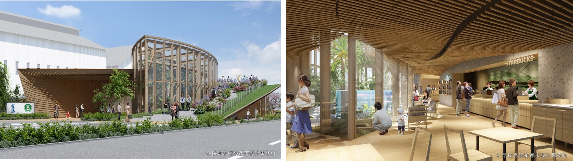 スターバックス コーヒー ジャパンと霧島酒造は、2026年春に開業予定のコラボ施設をオープン。隈研吾氏のデザインで、地域社会や環境との共生を重視し、竹を活かした落ち着いた空間が特徴です。ガラス張りの植物園では、コーヒーの木やさつまいもを含む80種類の亜熱帯植物が展示され、焼酎の製造時に発生する熱エネルギーが利用されます。施設の電力は「サツマイモ発電」100%で、自然との調和が図られています。客席や芝生エリアではリラックスし、屋上庭園からは都城の自然を楽しむことができます。