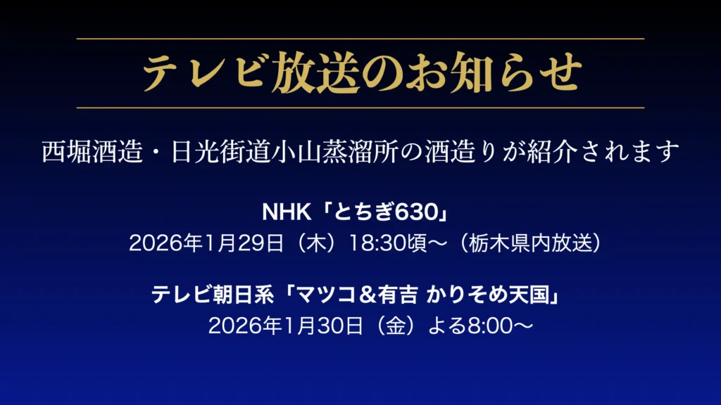 栃木県小山市にある歴史ある酒蔵「西堀酒造」が、テレビ朝日系『マツコ&有吉 かりそめ天国』