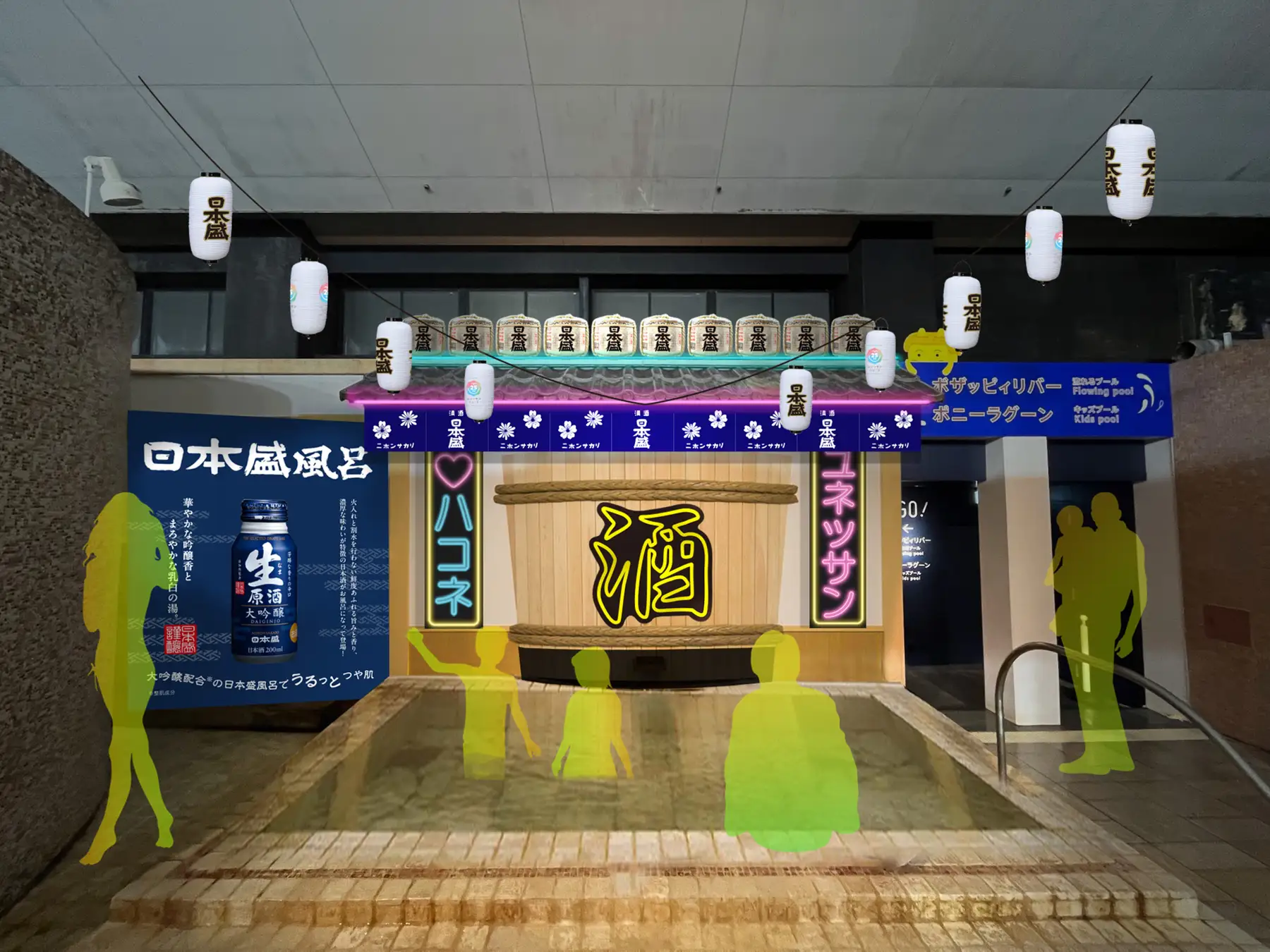 新年の邪気払いや無病息災を願い、水着で遊べる「ユネッサン」に、日本盛の「生原酒ボトル缶 大吟醸」を配合した入浴料を使用した「日本盛風呂」が登場。期間中は毎日、本物の日本酒を投入するパフォーマンスも実施されます。