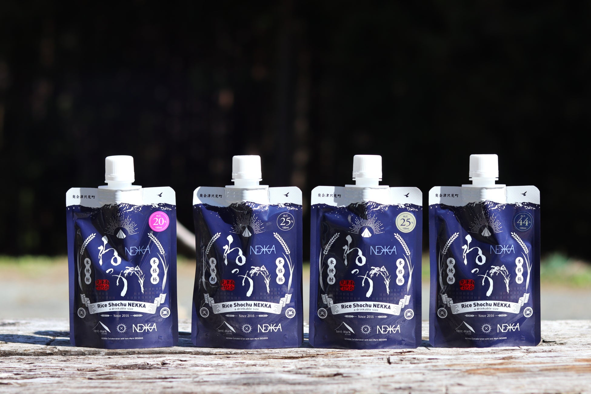 この商品は、ねっかの定番4種類の米焼酎を、アウトドアに適したアルミパウチに詰めたものです。炭酸割りやお湯割り、ロックはもちろん、冷やした炭酸と合わせてハイボールにしたり、冷凍してフローズン焼酎として楽しんだり、お燗にすることも可能です。