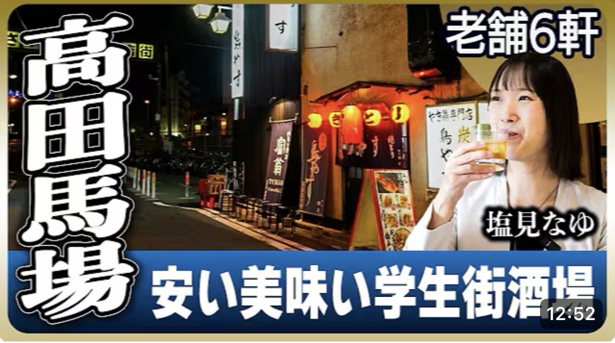 youtube今回は日本を代表する学生街のひとつ「高田馬場」にやってきました。 高田馬場といえば大学の街。 学生街なので打ち上げで使うような激安の大箱居酒屋は確かに多いです。 また、食通の間では「ラーメン激戦区」や「とんかつの聖地」としても知られる「食の街」でもあります。 ですが、高田馬場の魅力はそれだけではありません。 大学関係者や地元の会社員たちのお腹と心を満し続けてきた、 手頃で美味しくしっかり歴史のある「大衆酒場」や専門店が、この街にはたくさん息づいているんです。